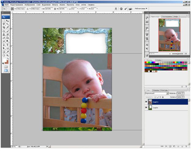 Откроем сначала файл с рамкой, потом с ребенком. Скопируем изображение ребенка и перенесем его в файл с рамкой.