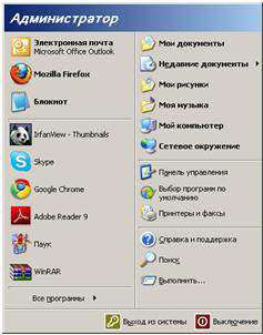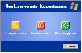 Выключение начинается с нажатия кнопки ПУСК (слева внизу экрана). Щелкните по ней мышкой. Нажмем «Выключить» и увидим такую картинку.
