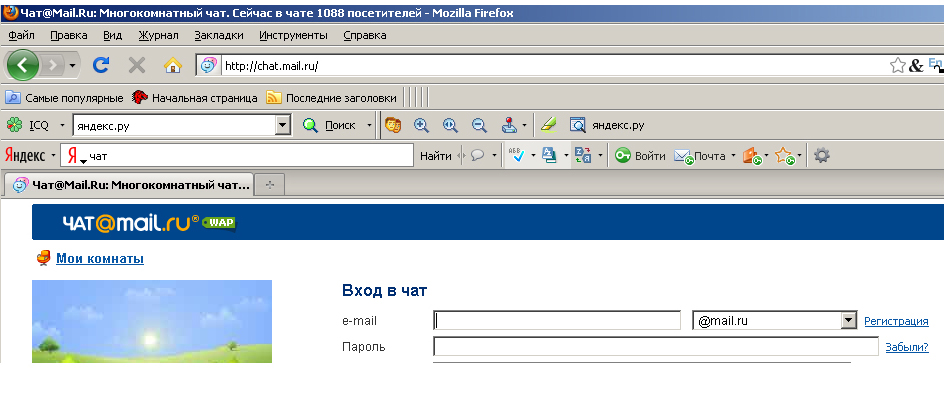 Чат. Есть такая система общения, как чат. Это можно сравнить с посиделками на завалинке. Чат – общение разных людей, которые возможно и не видели друг друга, путем набирания информации на клавиатуре. Набрав в Поиске слово «чат» вы получите множество сайтов, которые предоставляют чаты. Часто чаты находятся и на сайтах, которые созданы в последнее время. Есть чаты, в которых требуется регистрация, есть чаты, в которых можно общаться без регистрации. При регистрации не вводите свой настоящий пароль от почтового ящика!